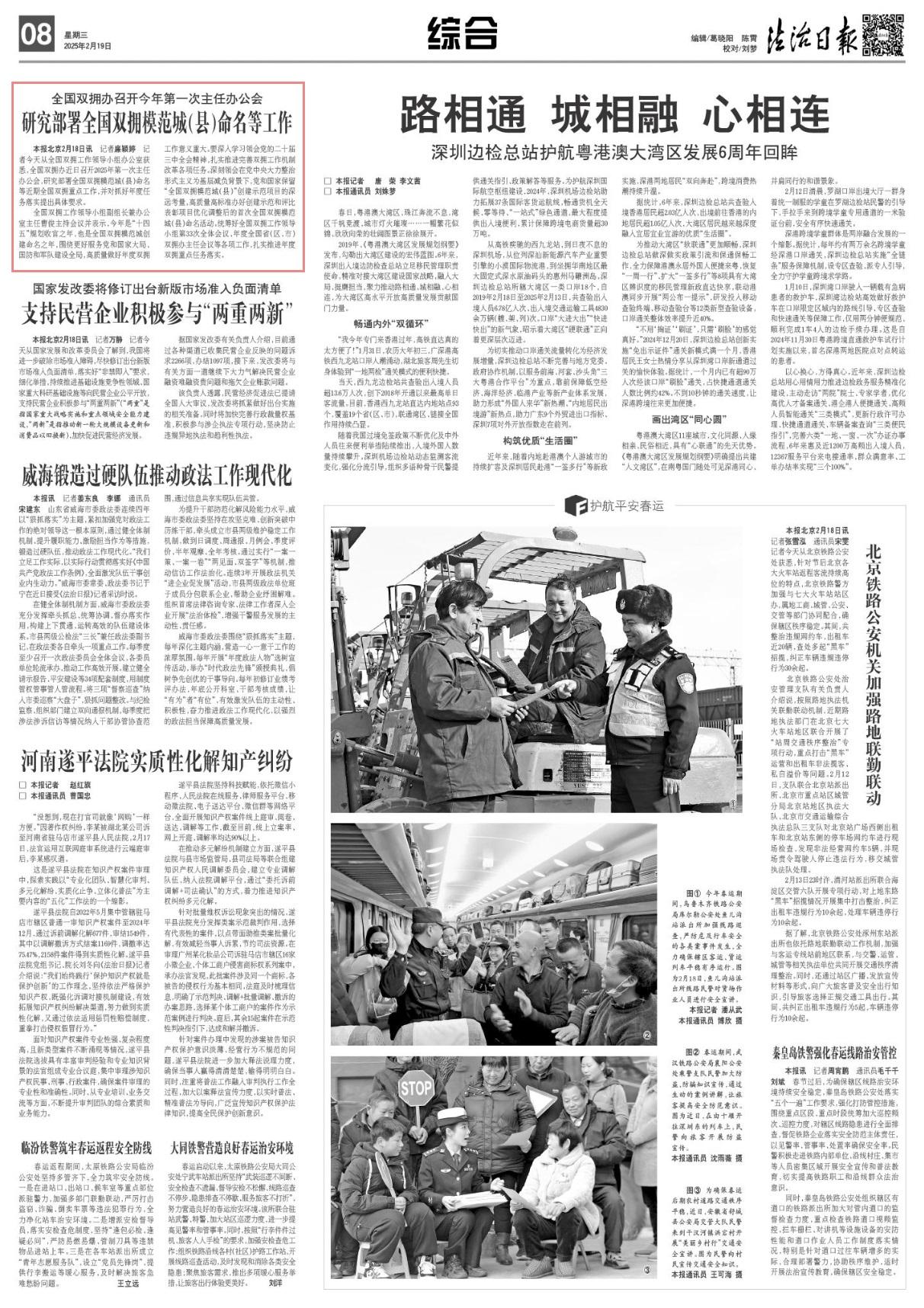 記者2月18日從全國雙擁工作領(lǐng)導(dǎo)小組辦公室獲悉,全國雙擁辦近日召開2025年第一次主任辦公會,研究部署全國雙擁模范城(縣)命名等近期全國雙擁重點(diǎn)工作,并對抓好年度任務(wù)落實(shí)提出具體要求。