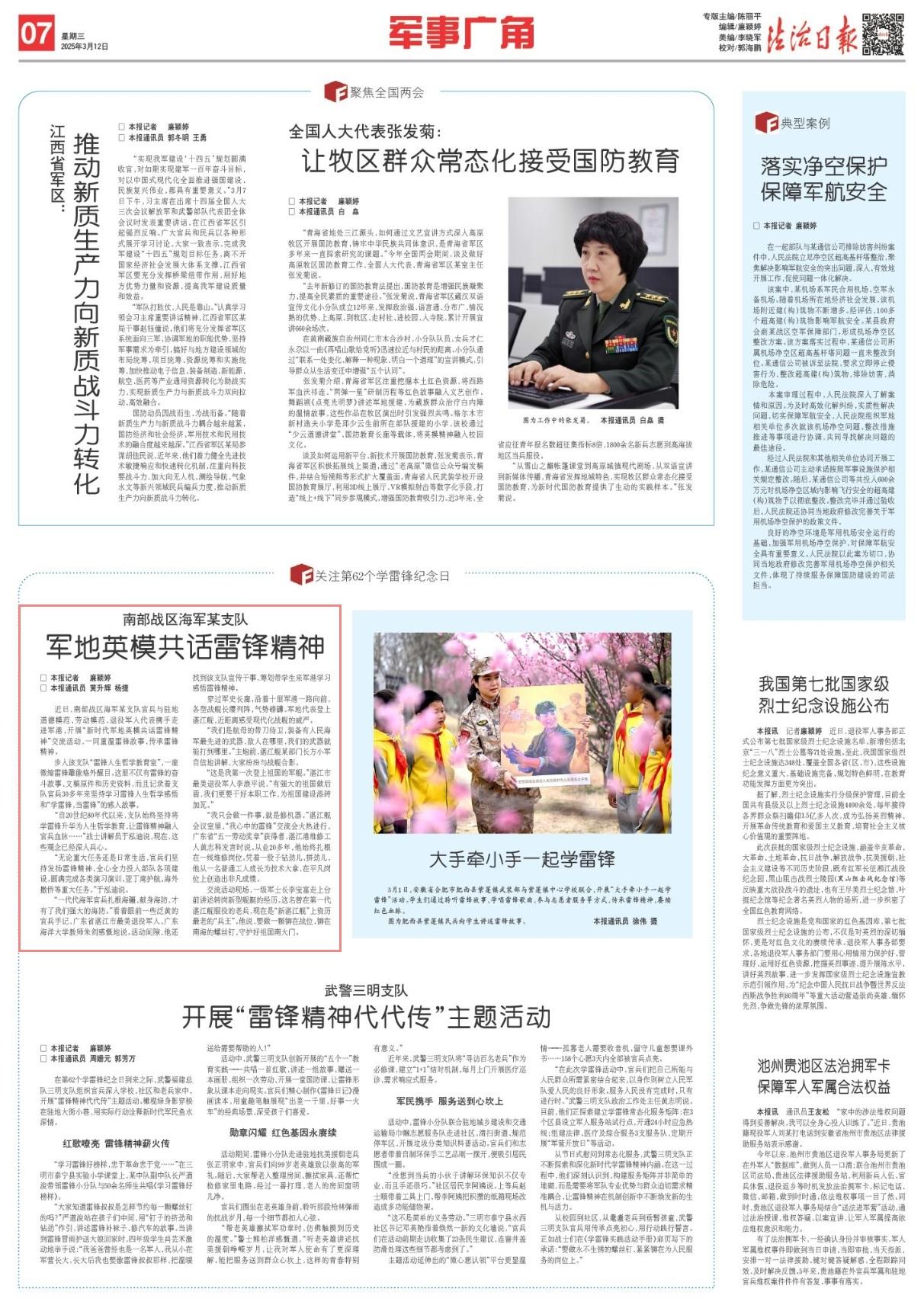 “無論重大任務(wù)還是日常生活,官兵們堅持發(fā)揚雷鋒精神,全心全力投入部隊各項建設(shè),圓滿完成各類演習(xí)演訓(xùn)、亞丁灣護航、海外撤僑等重大任務(wù)?!庇阢险f。