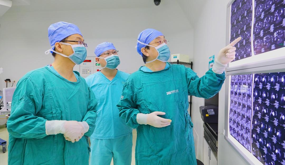 圖為姜?jiǎng)P主任團(tuán)隊(duì)一邊查閱核磁膠片一邊討論手術(shù)細(xì)節(jié),制定周密方案,確保手術(shù)萬(wàn)無(wú)一失。