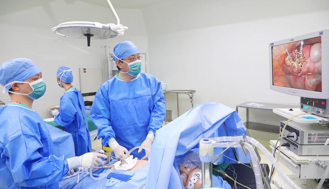 姜?jiǎng)P帶領(lǐng)團(tuán)隊(duì)經(jīng)過(guò)多輪討論,制定了分3次徹底消融的科學(xué)手術(shù)方案。經(jīng)周密準(zhǔn)備,手術(shù)開(kāi)始了。團(tuán)隊(duì)醫(yī)生在腹腔鏡輔助下對(duì)肝臟上皮樣血管內(nèi)皮瘤進(jìn)行消融治療,一次性完全消融20余個(gè)較大腫瘤,術(shù)后患者恢復(fù)順利。一個(gè)月后復(fù)查消融病灶徹底壞死。隨后團(tuán)隊(duì)醫(yī)生又分別在同年4月、7月分別消融患者剩余病灶。最終,在成功消融40余個(gè)病灶后,患者重返健康。
