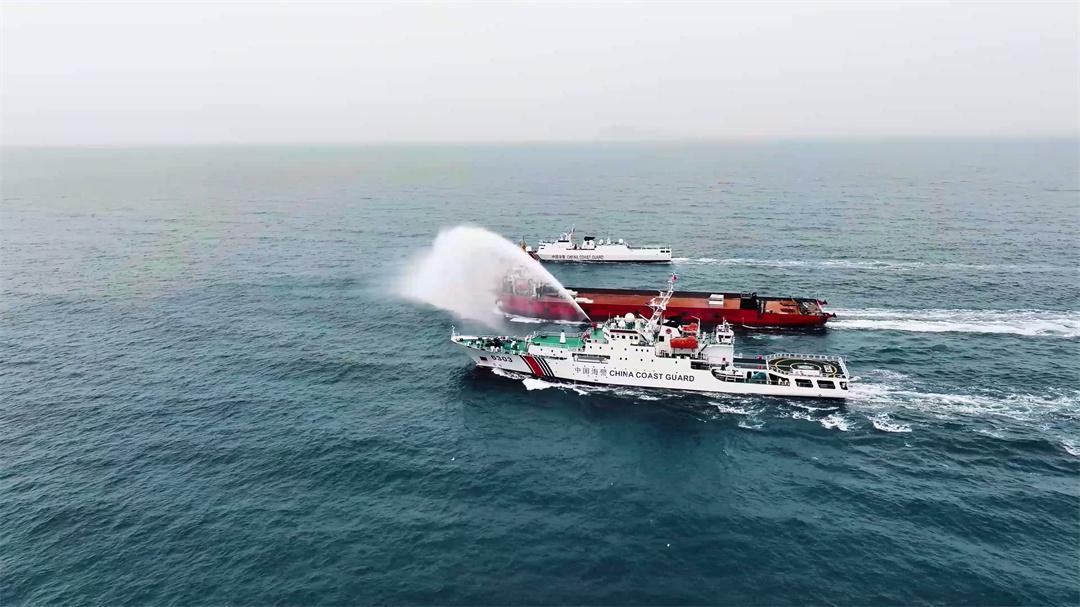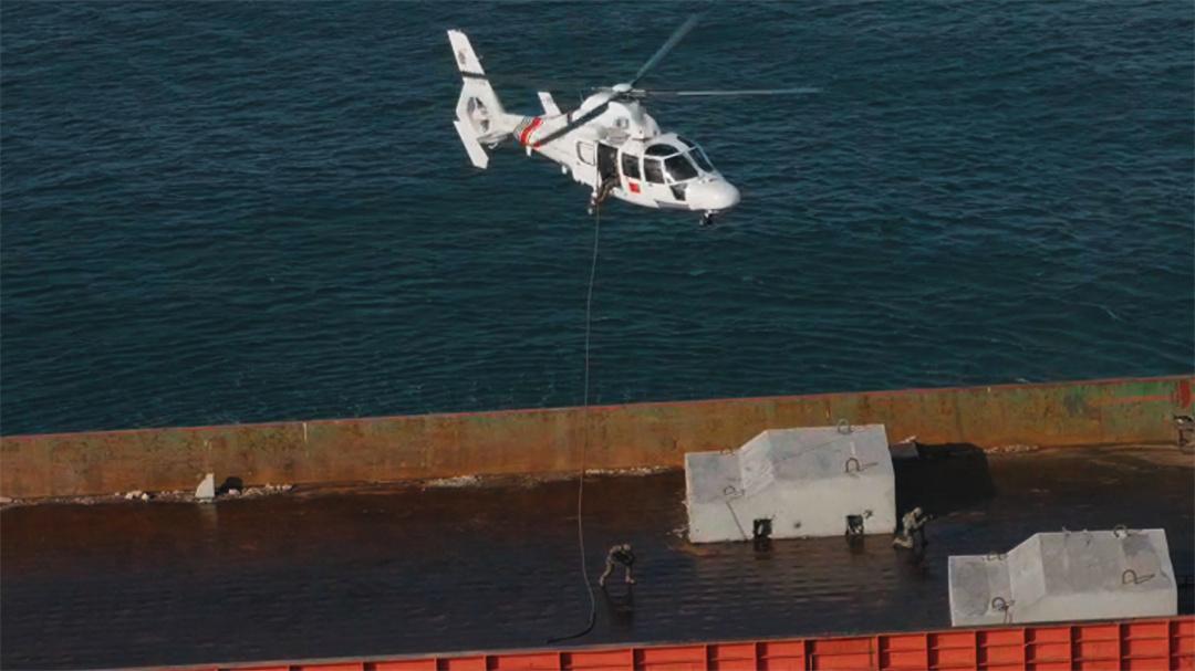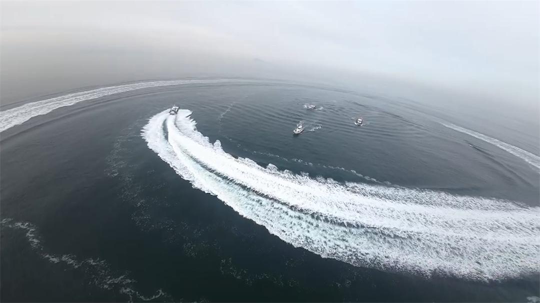 最刺激的當數(shù)“甲板突襲”現(xiàn)場:執(zhí)法員從直升機索降而下,快艇同時抵近包抄,水炮精準壓制目標船舵機,整套動作行云流水。