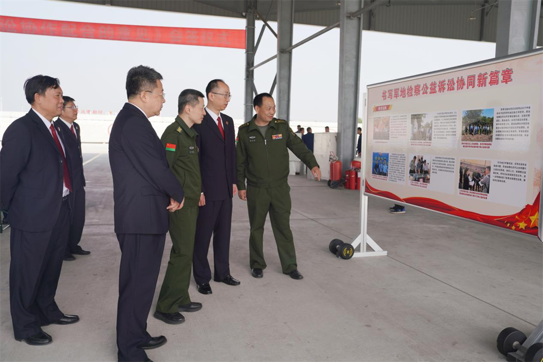 圖為與會(huì)人員參觀(guān)軍地檢察公益訴訟為保護(hù)軍事設(shè)施取得的成績(jī)。