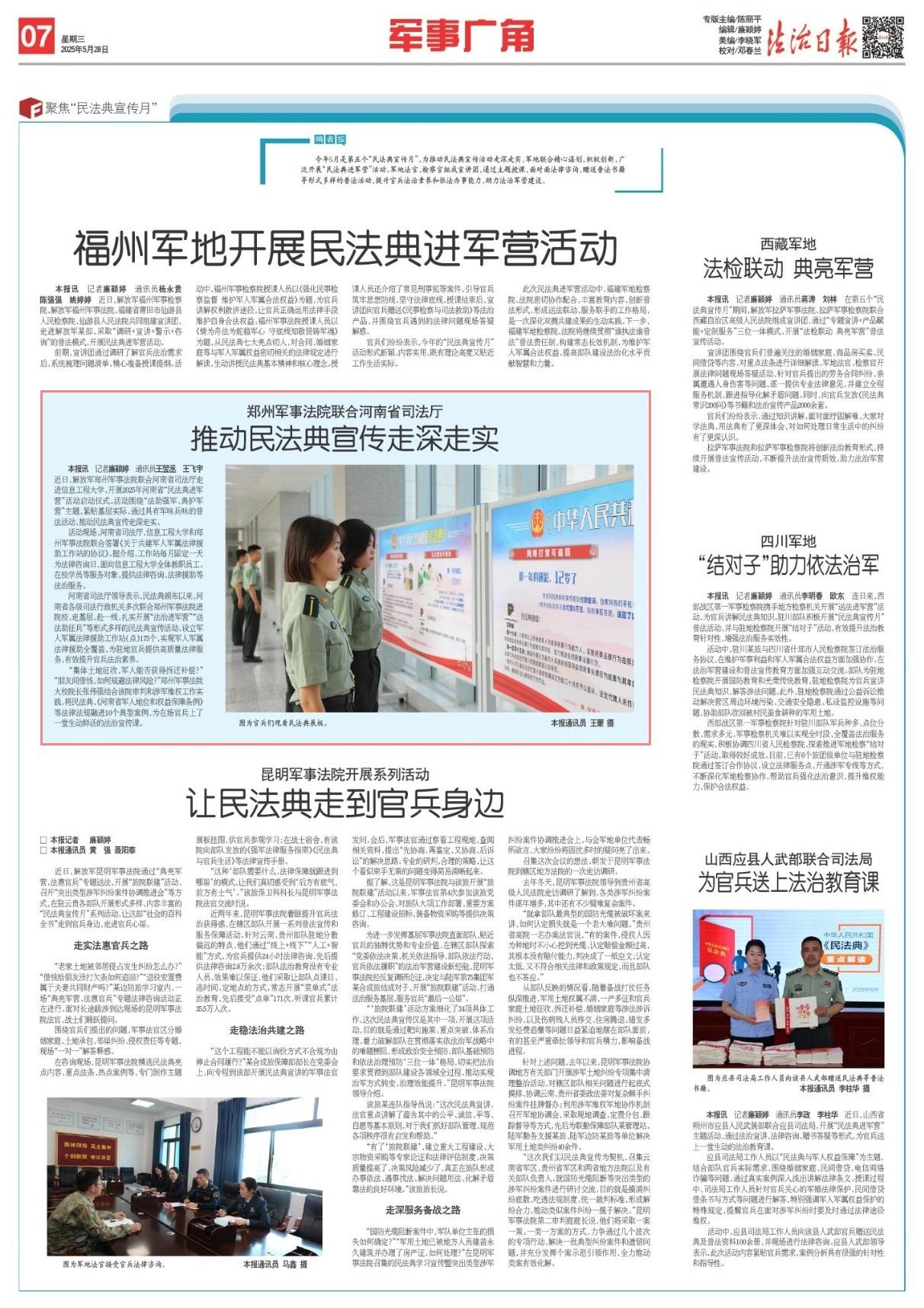 近日,解放軍鄭州軍事法院聯(lián)合河南省司法廳走進(jìn)信息工程大學(xué),開展2025年河南省“民法典進(jìn)軍營(yíng)”活動(dòng)啟動(dòng)儀式?;顒?dòng)圍繞“法助強(qiáng)軍、典護(hù)軍營(yíng)”主題,緊貼基層實(shí)際,通過具有軍味兵味的普法活動(dòng),推動(dòng)民法典宣傳走深走實(shí)。