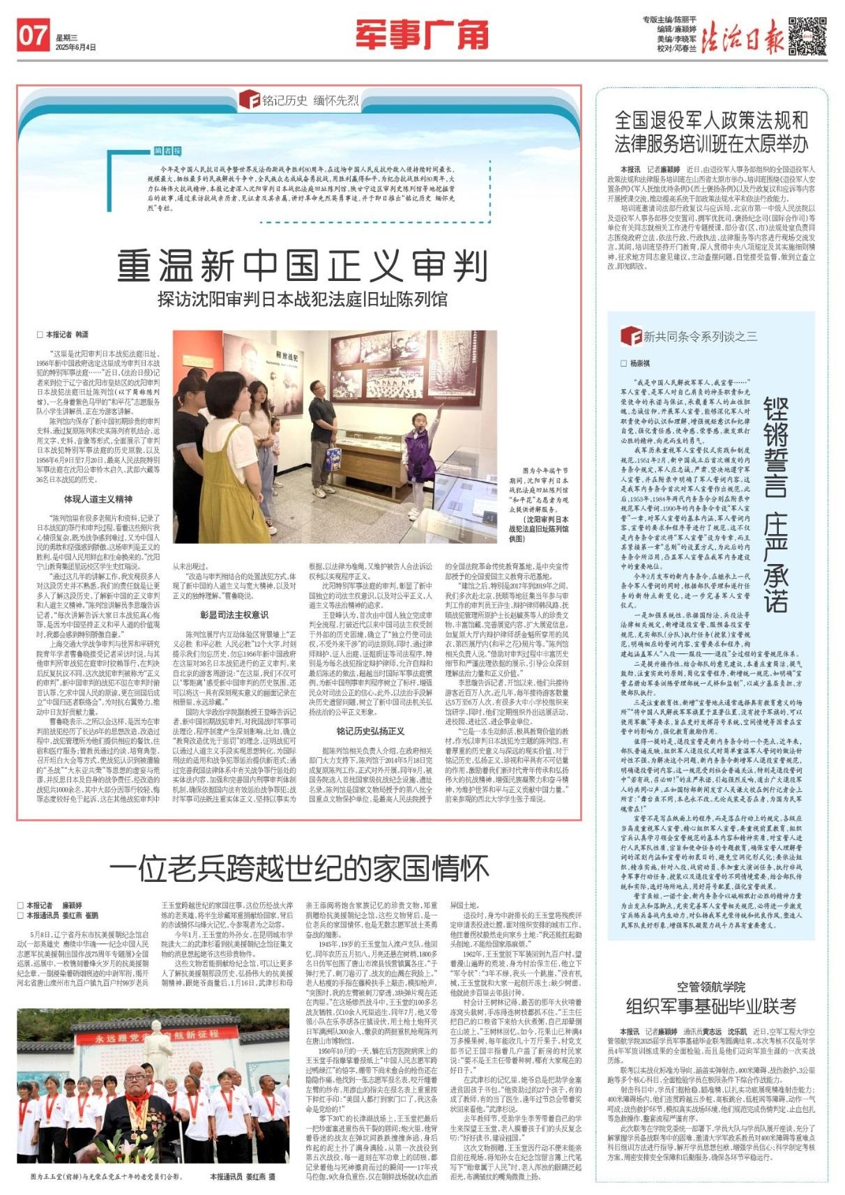 今年是中國(guó)人民抗日戰(zhàn)爭(zhēng)暨世界反法西斯戰(zhàn)爭(zhēng)勝利80周年。在這場(chǎng)中國(guó)人民反抗外敵入侵持續(xù)時(shí)間最長(zhǎng)、規(guī)模最大、犧牲最多的民族解放斗爭(zhēng)中,全民族眾志成城奮勇抗戰(zhàn),用勝利贏得和平。為紀(jì)念抗戰(zhàn)勝利80周年,大力弘揚(yáng)偉大抗戰(zhàn)精神,本報(bào)記者深入沈陽(yáng)審判日本戰(zhàn)犯法庭舊址陳列館、陜甘寧邊區(qū)審判史陳列館等地挖掘背后的故事,通過(guò)采訪抗戰(zhàn)親歷者、見(jiàn)證者及其親屬,講好革命先烈英勇事跡,并于即日推出“銘記歷史 緬懷先烈”專(zhuān)欄。