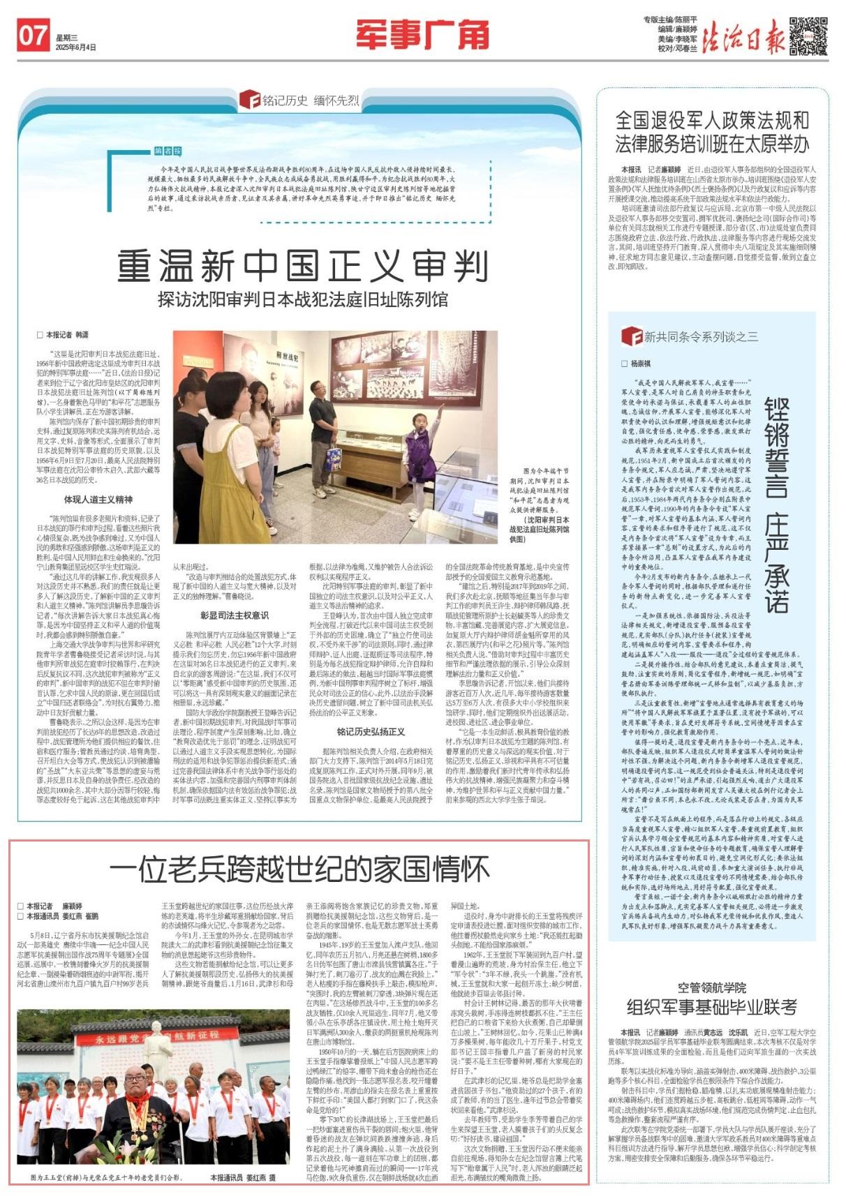 這次文物捐贈,王玉堂因行動不便未能親自前往現(xiàn)場。得知孫女在紀(jì)念館留言簿上代筆寫下“勛章屬于人民”時,老人渾濁的眼睛泛起淚光,布滿皺紋的嘴角微微上揚。