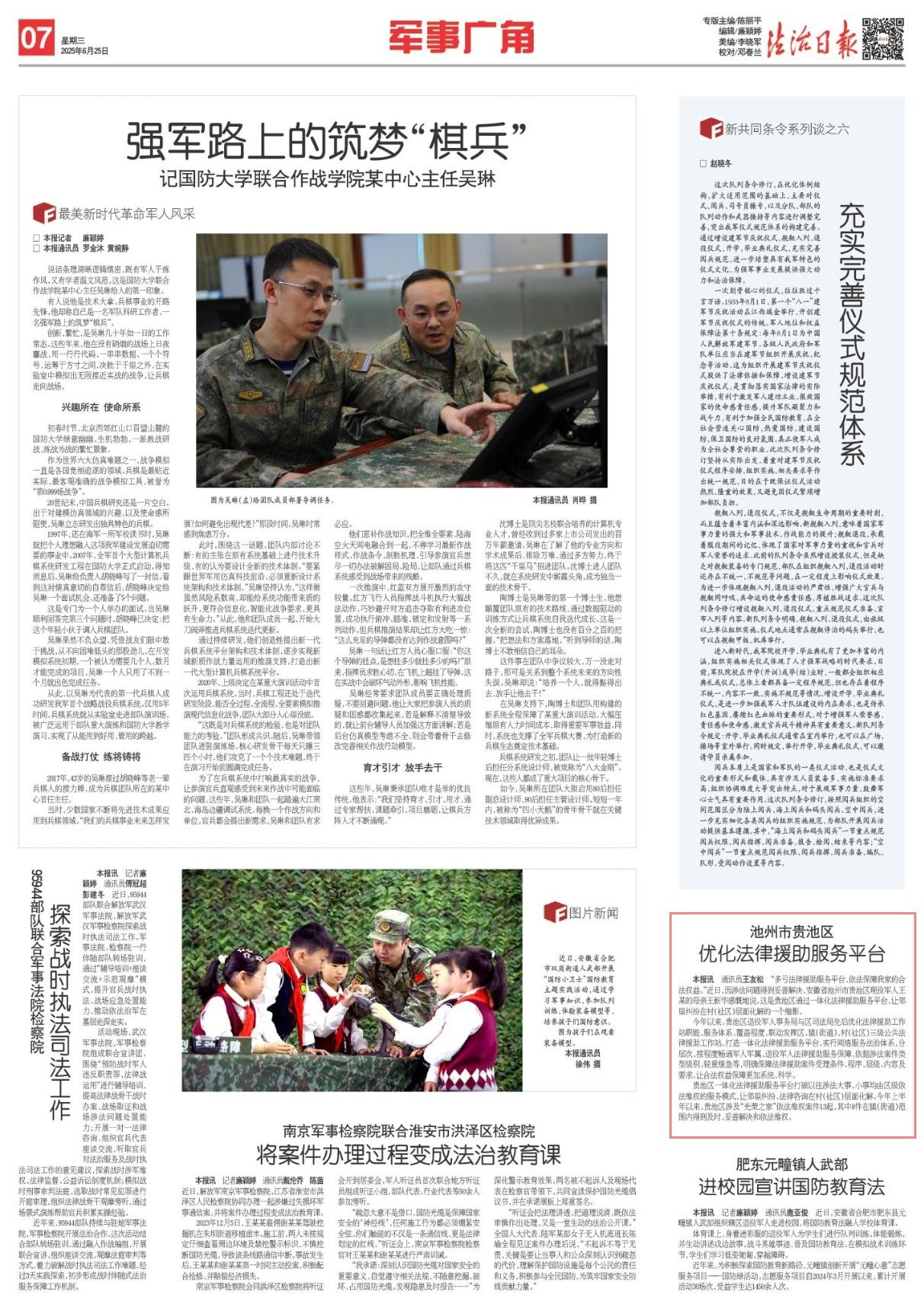 今年以來,貴池區(qū)退役軍人事務(wù)局與區(qū)司法局先后優(yōu)化法律援助工作站職能、服務(wù)體系、覆蓋程度,聯(lián)動發(fā)揮區(qū)、鎮(zhèn)(街道)、村(社區(qū))三級公共法律援助工作站,打造一體化法律援助服務(wù)平臺,實行網(wǎng)絡(luò)服務(wù)法治體系,分層次、按程度暢通軍人軍屬、退役軍人法律援助服務(wù)保障,依據(jù)涉法案件類型級別、輕重緩急等,明確保障法律援助案件受理條件、程序、層級、內(nèi)容及要求,讓合法權(quán)益保障更加系統(tǒng)、科學(xué)。