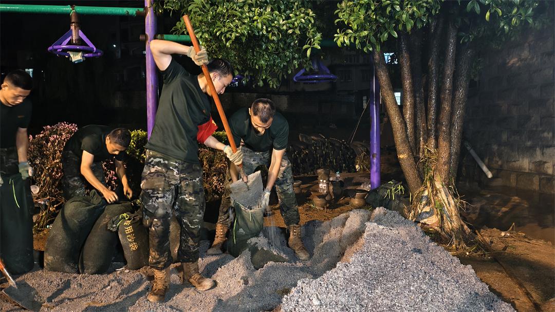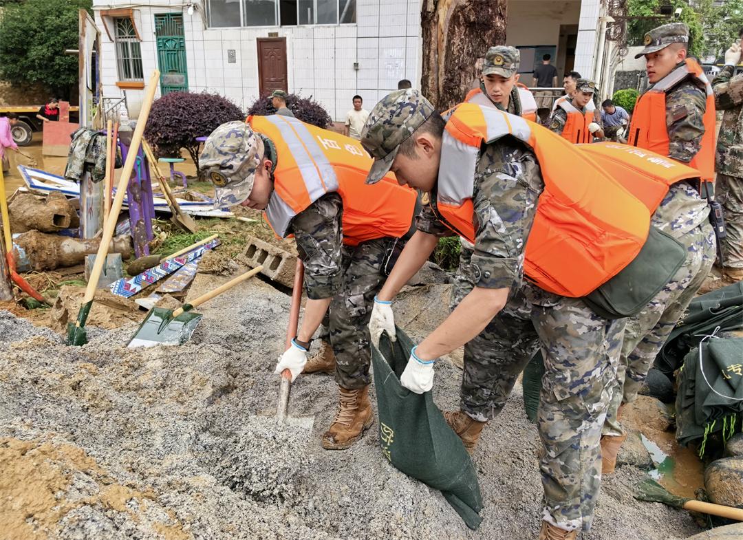 18時50分,武警百色支隊官兵依據(jù)預案出動15名官兵,攜帶鐵鏟、鐵鎬、救生衣等各類搶險救援裝備,采取摩托化方式機動前往受災地域,協(xié)助當?shù)乜h政府擔負搶險救災任務。