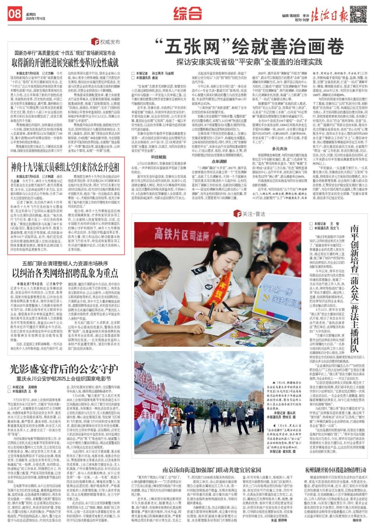 7月9日下午,神舟十九號乘組與記者見面會在北京航天城舉行。航天員蔡旭哲、宋令東、王浩澤返回兩個多月后,首次面向媒體與公眾正式公開亮相,分享了183天太空駐留的經(jīng)歷與感悟。
