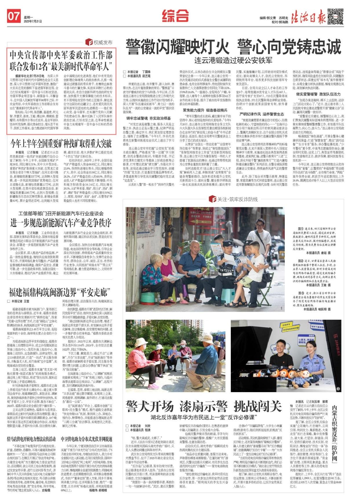 據(jù)新華社北京7月20日電 為深入學(xué)習(xí)貫徹習(xí)近平新時(shí)代中國(guó)特色社會(huì)主義思想,深入學(xué)習(xí)貫徹習(xí)近平強(qiáng)軍思想,激勵(lì)廣大官兵在黨的旗幟下奮進(jìn)強(qiáng)軍新征程,全力打好實(shí)現(xiàn)建軍一百年奮斗目標(biāo)攻堅(jiān)戰(zhàn),為強(qiáng)軍事業(yè)艱苦奮斗、頑強(qiáng)奮斗、不懈奮斗,在中國(guó)人民解放軍建軍98周年之際,中央宣傳部、中央軍委政治工作部聯(lián)合發(fā)布12名“最美新時(shí)代革命軍人”。