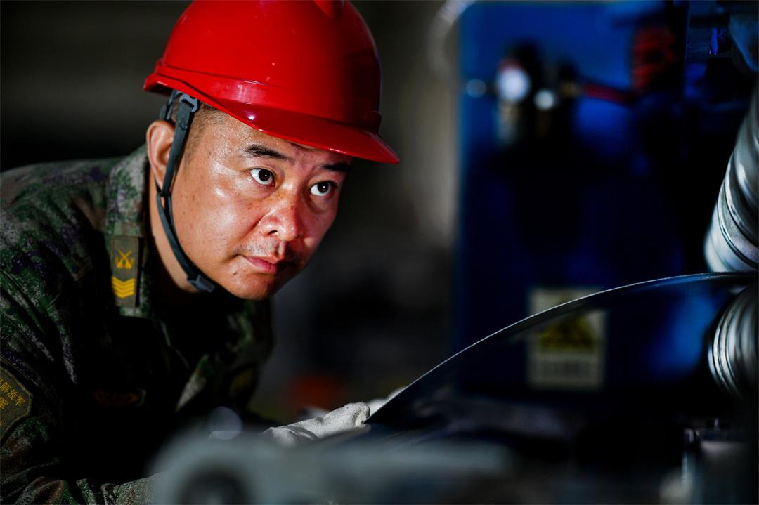 圖為崔道虎 (左一)幫帶戰(zhàn)友查找排除設(shè)備故障。劉明松 攝
