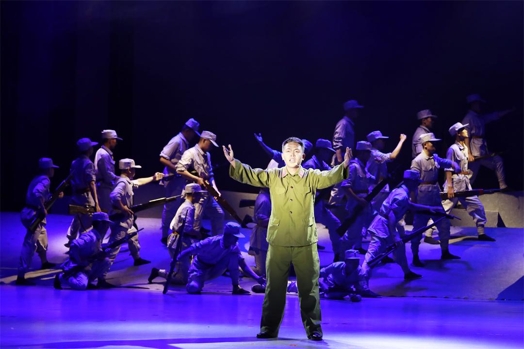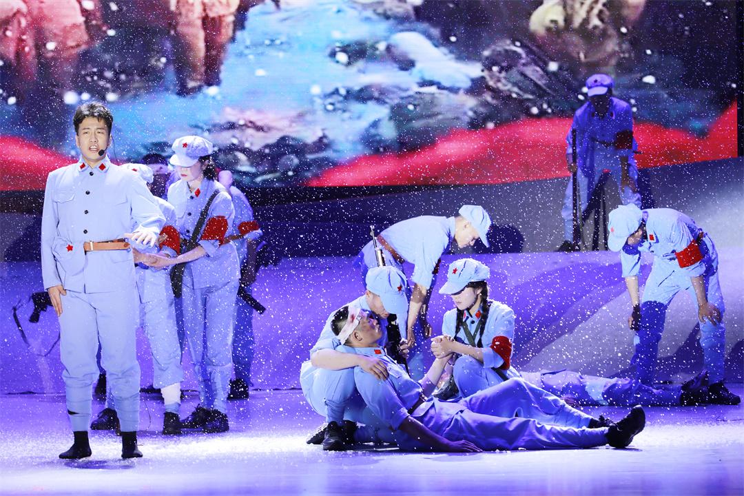 演出分為“烽火歲月”“忠誠使命”“強軍征程”三個篇章,共12個節(jié)目。開篇情景劇《山河銘記》以震撼的舞臺效果,再現(xiàn)了抗戰(zhàn)時期中華兒女浴血奮戰(zhàn)的壯烈場景;紅歌聯(lián)唱《三灣來了毛委員》《八月桂花遍地開》用經(jīng)典旋律喚起紅色記憶;男子群舞《為你站崗》以剛勁有力的舞姿,展現(xiàn)了高原官兵的堅守與擔當。