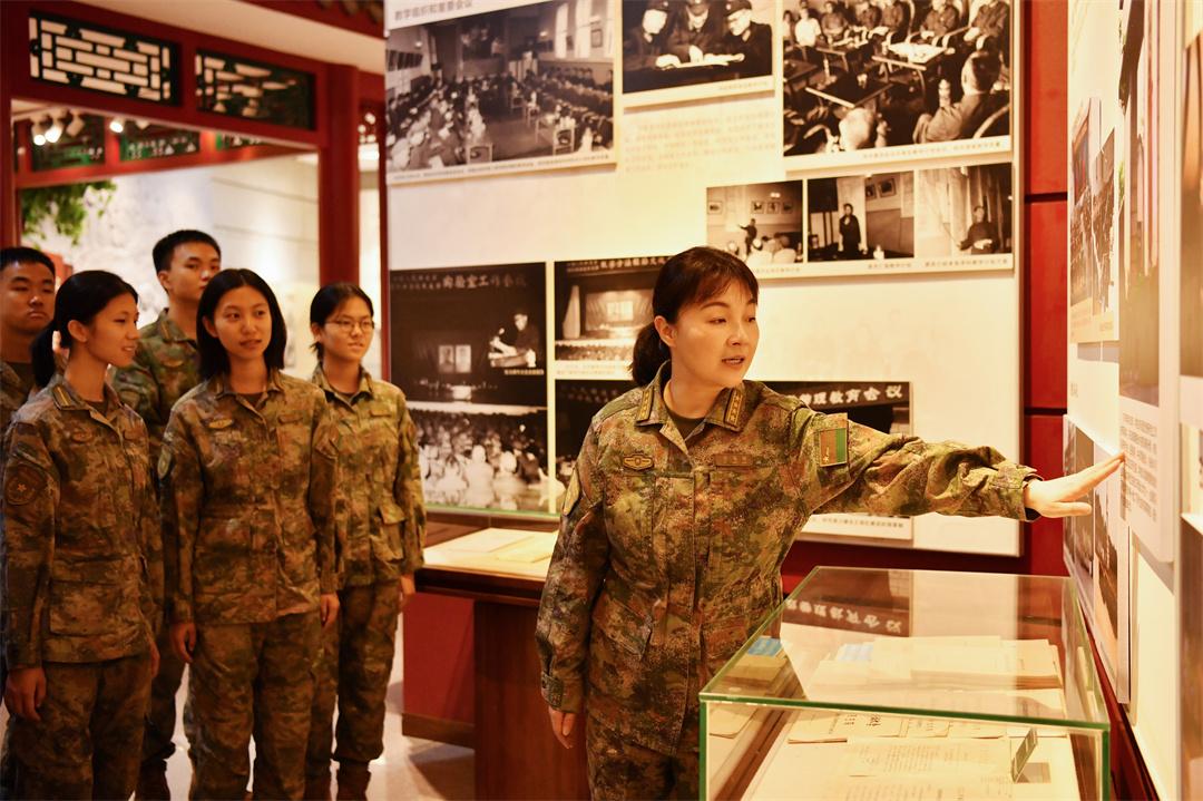 圖為傅婉娟教授(左一)在校史館開展實(shí)踐教學(xué)。