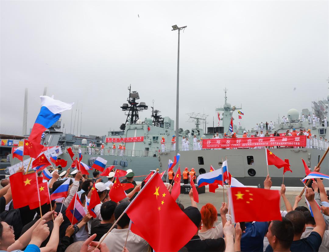 圖為抵達(dá)符拉迪沃斯托克后,中國(guó)艦艇編隊(duì)受到熱烈歡迎。黨文彬 攝