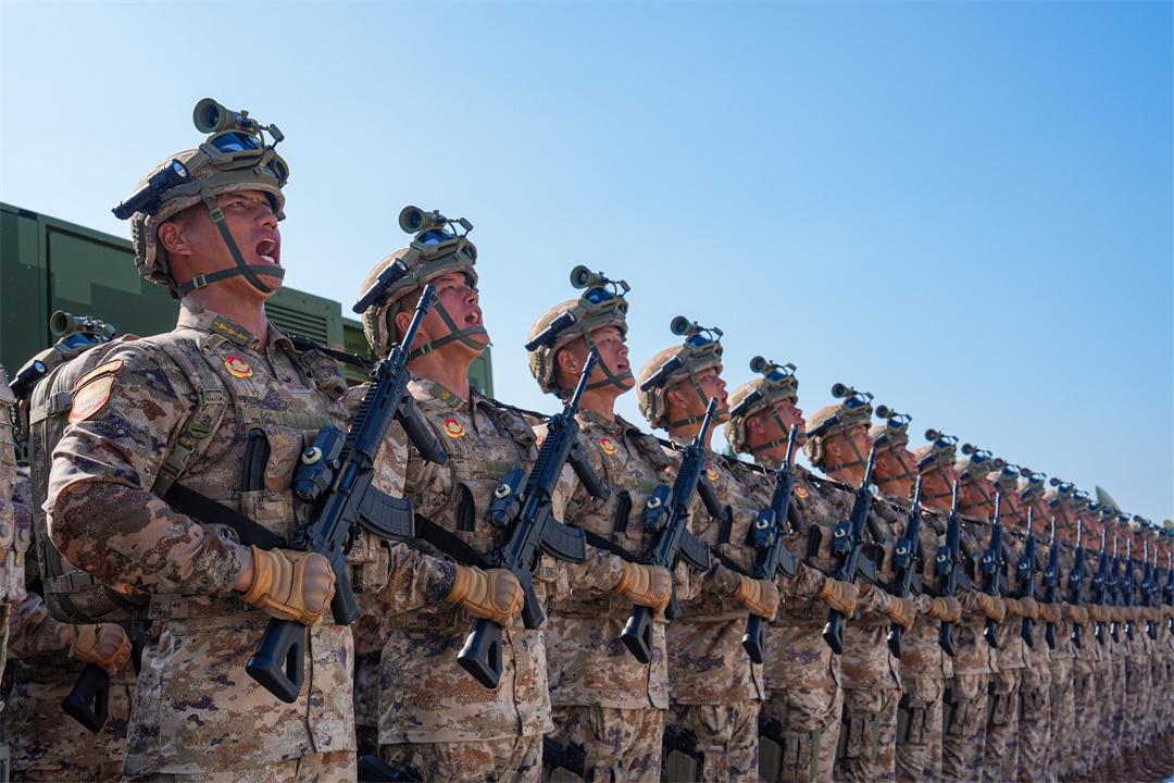 圖為受閱隊員在閱兵集訓(xùn)點進(jìn)行呼號訓(xùn)練。王晨曦 攝