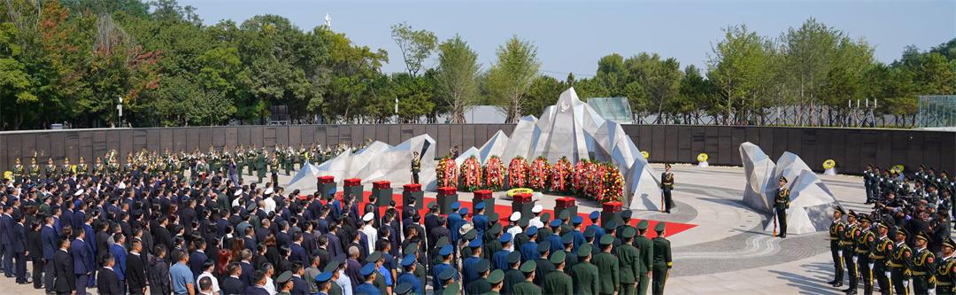 9月13日10時(shí),安葬儀式開始。陵園下沉式紀(jì)念廣場(chǎng)環(huán)形烈士英名墻下,擺滿黃白相間的菊花,參加儀式的人們肅穆站立。軍樂隊(duì)奏響婉轉(zhuǎn)低回的《思念曲》,在解放軍儀仗司禮大隊(duì)官兵持槍護(hù)衛(wèi)下,禮兵們邁著整齊的步伐,護(hù)送志愿軍烈士遺骸棺槨緩步進(jìn)入紀(jì)念廣場(chǎng),全場(chǎng)奏唱中華人民共和國(guó)國(guó)歌。