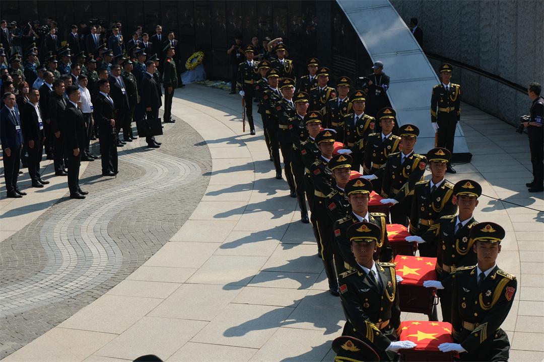 圖為9月13日,禮兵護(hù)送志愿軍烈士棺槨進(jìn)入沈陽抗美援朝烈士陵園安葬地宮。張永進(jìn) 攝