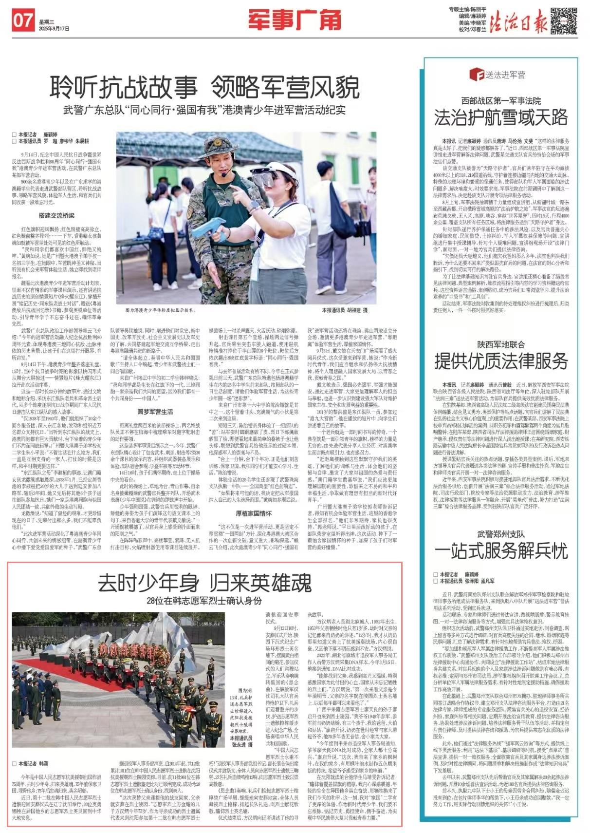 在沈陽就讀的臺(tái)胞學(xué)生馬靖雯告訴記者:“瞻仰著覆蓋國(guó)旗的棺槨,我內(nèi)心深感震撼。年輕的生命在異國(guó)他鄉(xiāng)浴血奮戰(zhàn),用犧牲換來了我們今天的和平。這一刻,我對(duì)‘家國(guó)’二字有了更深的體悟。作為新時(shí)代青少年,我們要不忘根脈、銘記歷史,勇?lián)姑?、攜手奮進(jìn),為實(shí)現(xiàn)中華民族偉大復(fù)興貢獻(xiàn)青春力量?!?/p>