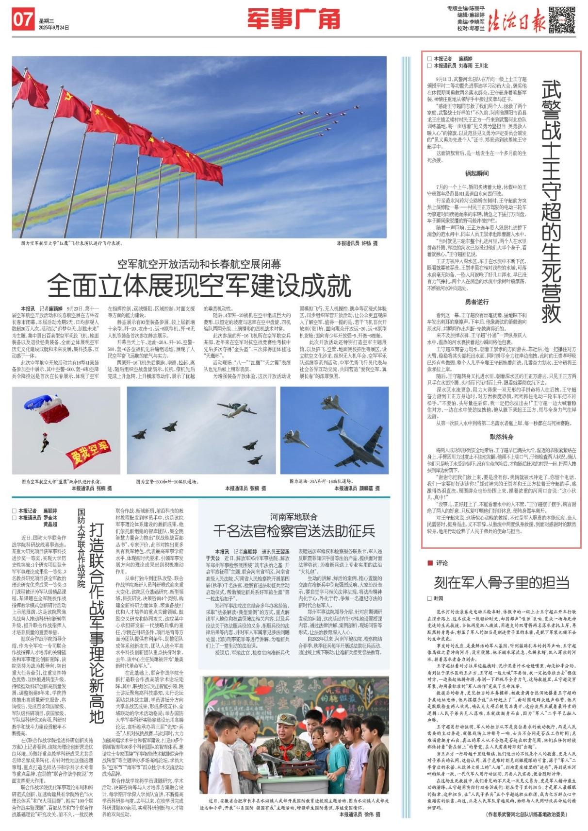 對(duì)王守超來(lái)說(shuō),這場(chǎng)驚心動(dòng)魄的救援,不過(guò)是軍人職責(zé)的本能反應(yīng)。當(dāng)人民需要時(shí),挺身而出,義不容辭。從激流中兩度縱身救援,到面對(duì)感謝時(shí)的默然轉(zhuǎn)身,他用行動(dòng)詮釋了人民子弟兵的使命與擔(dān)當(dāng)。