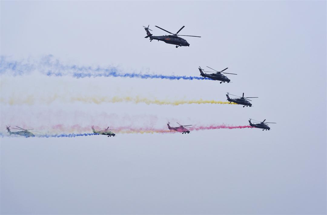 在開幕式飛行表演環(huán)節(jié),陸軍“風雷”飛行表演隊以七機通場飛行拉開帷幕,先后向觀眾演示了雙機對沖、四機開花,以及快速營救、繞點回轉等實戰(zhàn)應用演示,為觀眾呈現了一場融合技術、藝術與力量的空中盛宴,全面展示了國產直升機的卓越性能和飛行員的精湛技術。同時,也充分展示了陸軍航空兵部隊轉型建設和實戰(zhàn)化訓練成效。