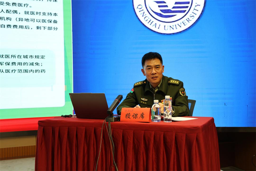 解放軍西寧軍事檢察院軍事檢察官魯振林以“筑夢強(qiáng)軍,優(yōu)待隨行”為題,為學(xué)子們講述了參軍入伍為當(dāng)代大學(xué)生帶來的紅利與機(jī)遇,將憲法規(guī)定的公民國防義務(wù)生動具象化。他從成長平臺、政策優(yōu)待、職業(yè)發(fā)展等多維度,深刻闡釋了軍營作為“淬煉大熔爐”和“人生加油站”的獨(dú)特價值。