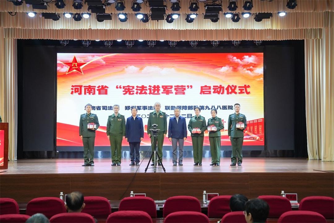 12月2日,鄭州軍事法院聯(lián)合河南省司法廳在聯(lián)勤保障部隊(duì)第九八八醫(yī)院,舉行了一場(chǎng)別開(kāi)生面的“憲法進(jìn)軍營(yíng)”啟動(dòng)儀式。儀式上,河南省司法廳領(lǐng)導(dǎo)表示,“八五”普法以來(lái),河南省將“送法進(jìn)軍營(yíng)”作為做好雙擁工作、推動(dòng)軍民融合發(fā)展的重要抓手,連續(xù)多年與鄭州軍事法院開(kāi)展法治宣傳教育進(jìn)軍營(yíng)活動(dòng),厚植軍隊(duì)法治文化,助推法治軍營(yíng)建設(shè)。
