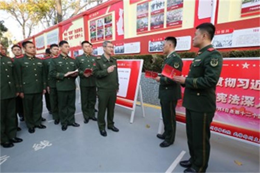 為提高普法教育的針對(duì)性、時(shí)效性,“憲法宣傳周”期間,鄭州軍事法院線下采取“法治微課堂”“法治文化長(zhǎng)廊”“法治書(shū)香惠官兵”等形式,先后在河南省軍區(qū)、武警河南總隊(duì)鄭州支隊(duì)、陸軍兵種大學(xué)等駐豫部隊(duì)開(kāi)展普法活動(dòng);線上依托強(qiáng)軍網(wǎng)開(kāi)設(shè)憲法宣傳專欄,推送精心制作的憲法主題展板,以圖文方式生動(dòng)宣傳憲法精神,讓法治教育“活”起來(lái)。