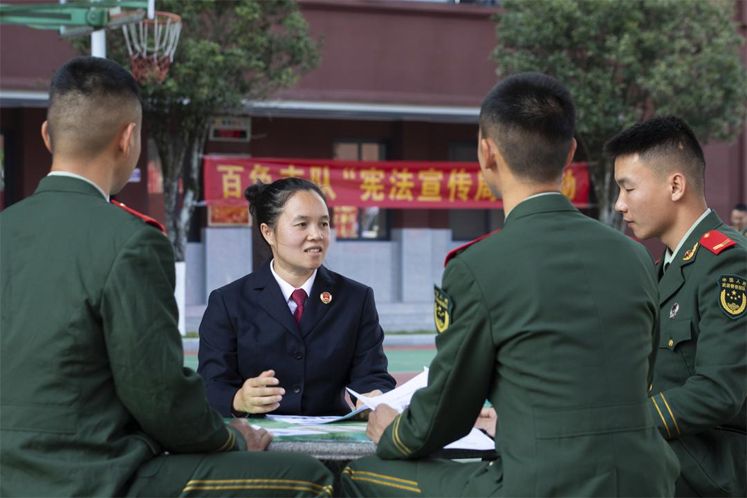 圖為官兵進(jìn)行法律咨詢。唐明洋 攝