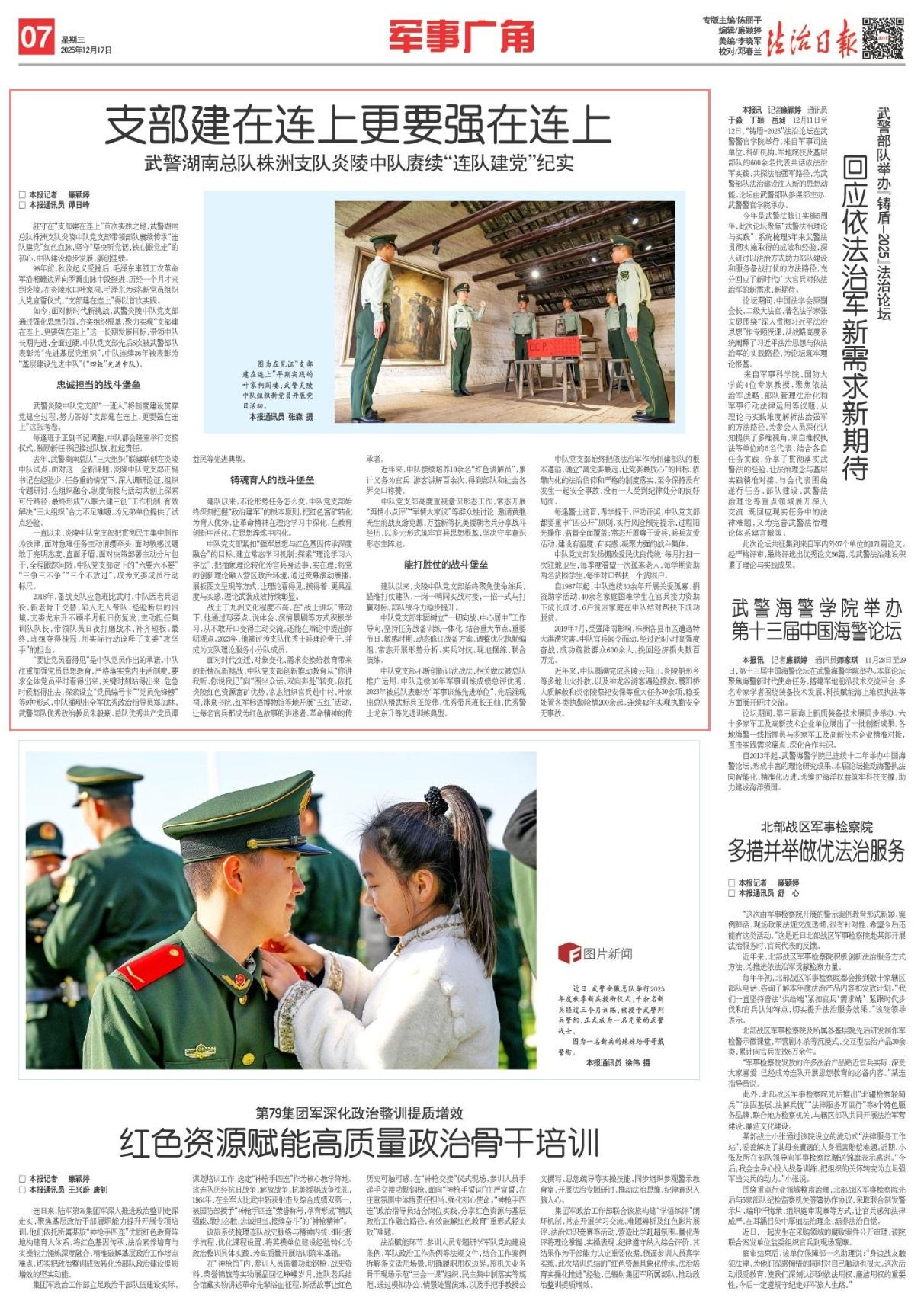 每逢警士選晉、考學(xué)提干、評(píng)功評(píng)獎(jiǎng),中隊(duì)黨支部都要重申“四公開”原則,實(shí)行風(fēng)險(xiǎn)預(yù)先提示、過(guò)程陽(yáng)光操作、監(jiān)督全面覆蓋;常態(tài)開展尊干愛兵、兵兵友愛活動(dòng),建設(shè)有溫度、有實(shí)感、凝聚力強(qiáng)的戰(zhàn)斗集體。