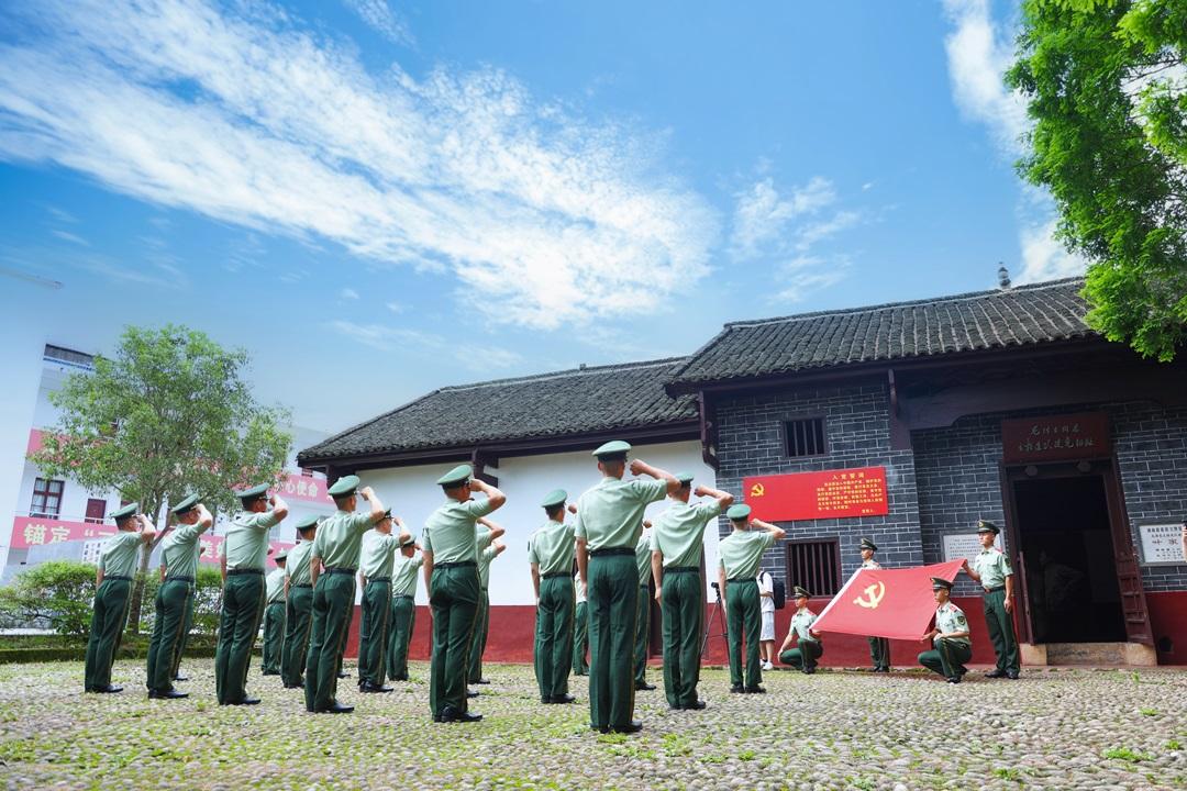 圖為武警炎陵中隊(duì)組織官兵赴“支部建在連上”實(shí)踐地葉家祠,開展入黨宣誓暨重溫誓詞活動(dòng)。