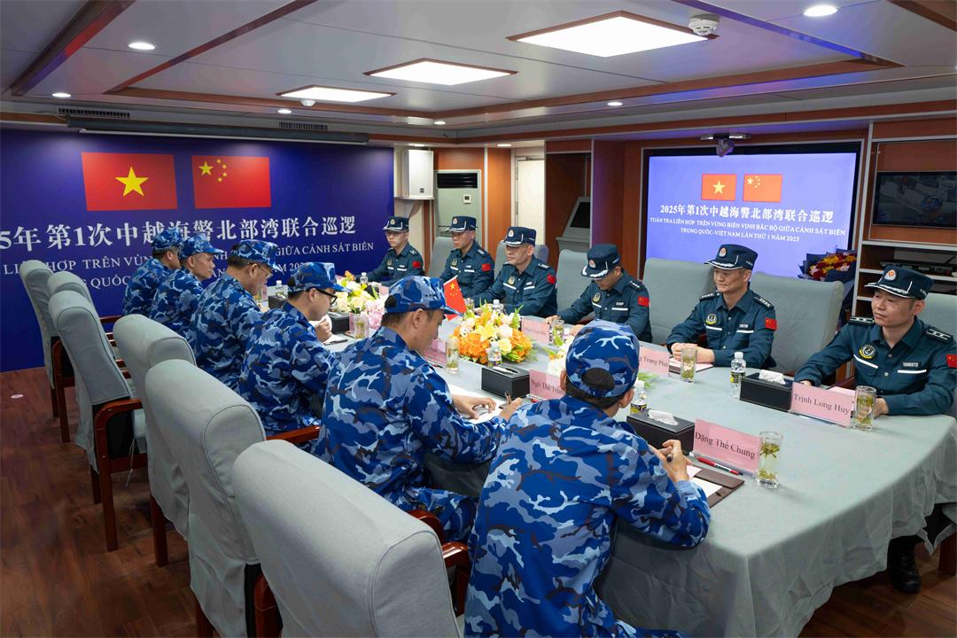 圖為中越海警2025年第一次北部灣聯(lián)合巡檢,雙方在4302艦會(huì)晤。