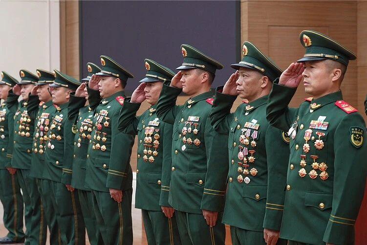 宣布授銜命令后,晉升人員更換上嶄新的警銜,胸掛閃耀的軍功章,向現(xiàn)場全體戰(zhàn)友莊嚴敬禮,全場響起熱烈掌聲。