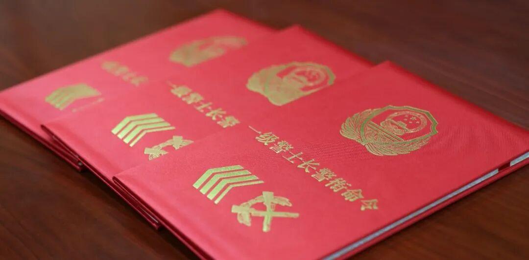 儀式在莊嚴的國歌聲中拉開帷幕,新晉升一級警士長警銜人員,身著筆挺的武警冬常服,精神抖擻地走到臺前接過命令狀。