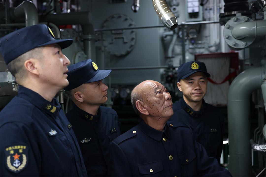 圖為一等戰(zhàn)功“海上猛虎艇”588艇原輪機(jī)班長王木昌參觀第五代“海上猛虎艇”紅河艦機(jī)艙,感受新老“海上猛虎艇”發(fā)展變遷。劉嘉 攝