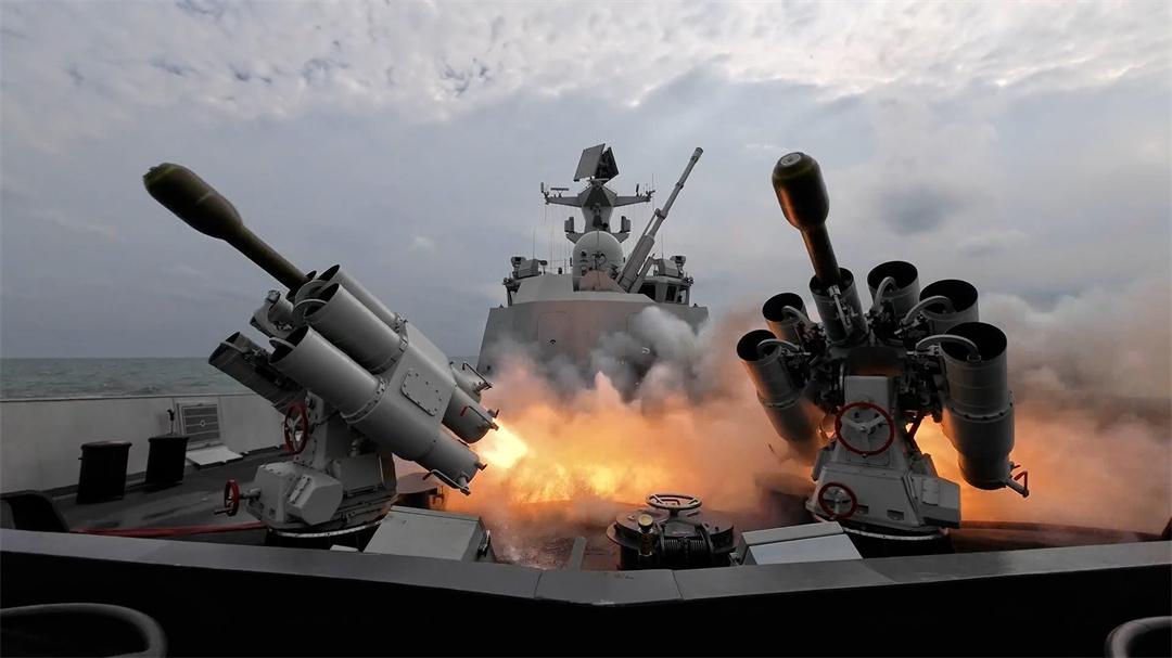 圖為海軍紅河艦進(jìn)行實(shí)射火箭深彈訓(xùn)練。李眺 攝