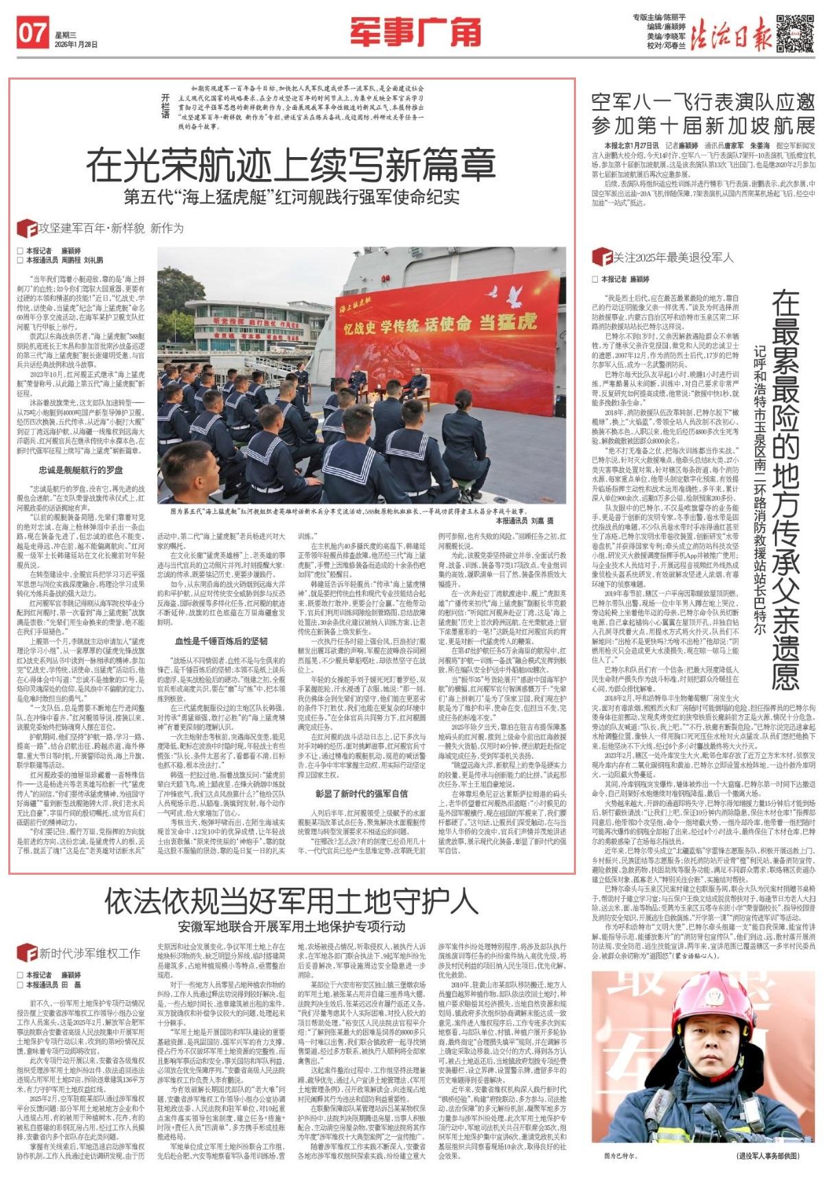 如今,從東南沿海的戰(zhàn)火硝煙到遠(yuǎn)海大洋的和平護(hù)航,從應(yīng)對傳統(tǒng)安全威脅到參與反恐反海盜、國際救援等多樣化任務(wù),紅河艦的航跡不斷延伸,戰(zhàn)旗的紅色底蘊(yùn)在萬里海疆愈發(fā)鮮明。