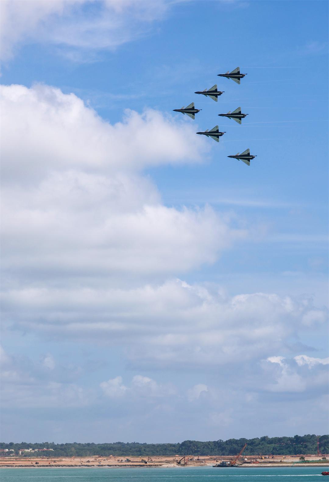 接到起飛指令后,6架殲-10表演機分2批依次起飛,在空中集合編組后,飛往機場另一區(qū)域海面上空,展開空中特技動作飛行。
