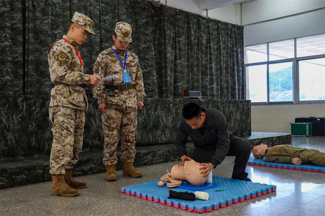 圖為參考人員進(jìn)行執(zhí)勤專業(yè)技能考核。