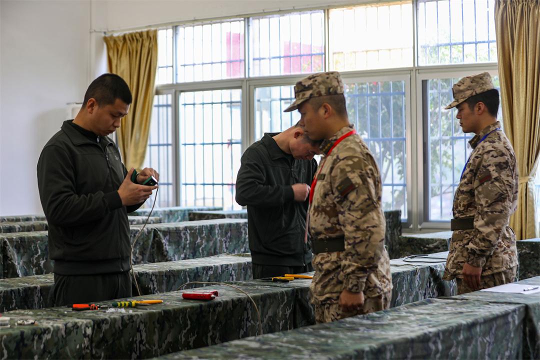 圖為參考人員進(jìn)行信通專業(yè)技能考核。