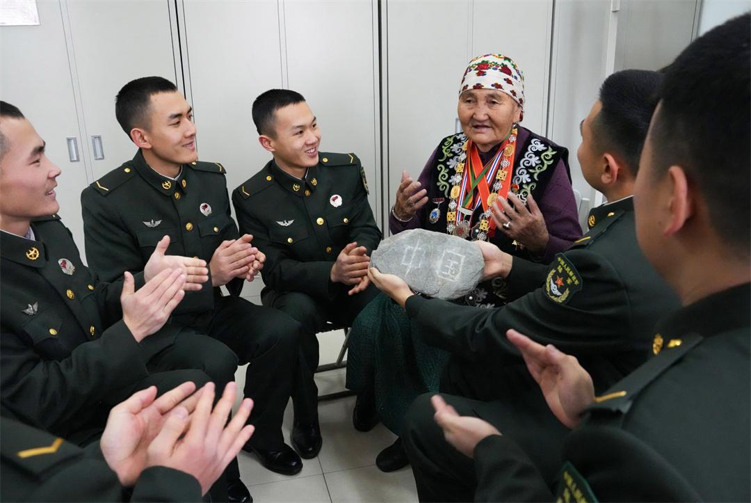 十萬“中國石”,一顆戍邊心。布茹瑪汗老人愛國戍邊的故事成為全連官兵淬煉強(qiáng)軍思想、激發(fā)戍邊熱情的強(qiáng)大動力。新兵陳大衛(wèi)看著石上深淺不一的刻痕,激動地說:“老大媽的故事并不驚天動地,卻讓我真正明白,守好邊、固好防,就是我們肩上最重的擔(dān)子。”