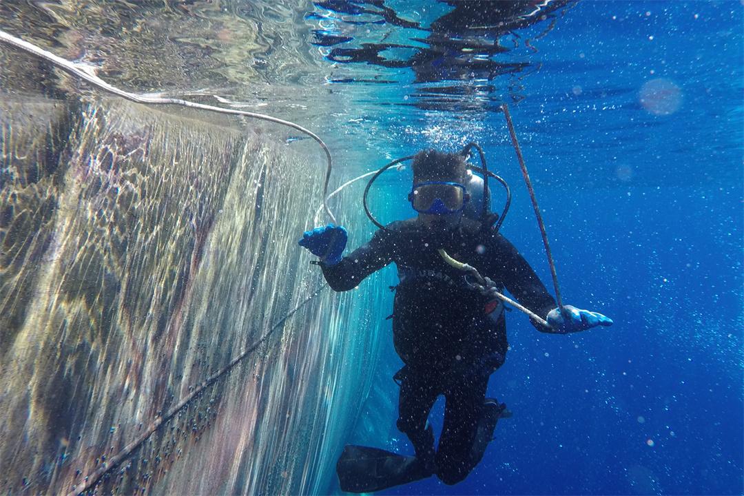 抵達(dá)現(xiàn)場后,經(jīng)應(yīng)急搶險分隊與現(xiàn)場人員研究討論,初步掌握疑似水下漁網(wǎng)絞纏狀況、艦艇參數(shù)資料以及當(dāng)天水下作業(yè)條件等。隨即,他們進(jìn)行動員部署、任務(wù)分工,展開潛水作業(yè)。潛水員許國雄爭著“下頭水”,經(jīng)過探摸清理,水下纏繞物被全部清除,戰(zhàn)艦恢復(fù)航行。