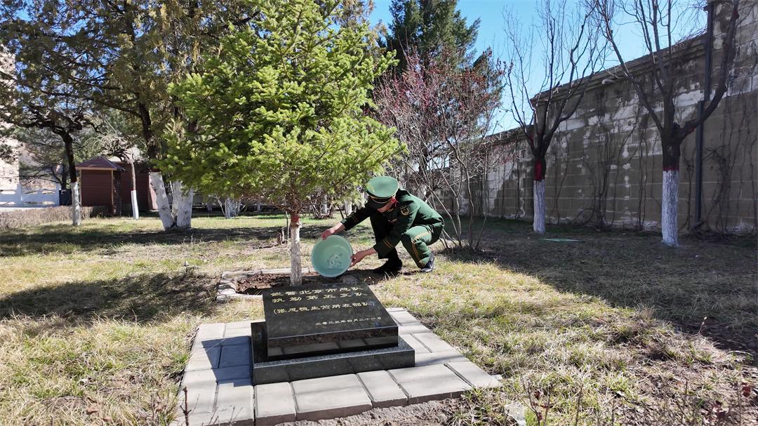 官兵們來到“張思德常青樹”旁揮鍬培土,提桶澆水。這棵由歷屆官兵親手栽種澆灌的青松,如今枝繁葉茂、挺拔蒼勁?!拔覀円襁@棵常青樹一樣,扎根紅色沃土,汲取精神力量,始終向上生長、向戰(zhàn)而行?!敝ш?duì)副教導(dǎo)員曾政說。
