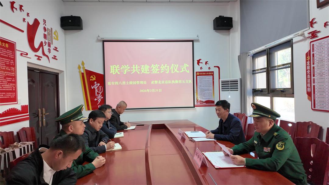 活動(dòng)現(xiàn)場,執(zhí)勤第五支隊(duì)與“四八”烈士陵園管理處共同簽署《紅色資源聯(lián)建共育協(xié)議書》,圍繞史料共享、教育聯(lián)動(dòng)、人才共育、陣地共建四大方向細(xì)化合作內(nèi)容,構(gòu)建起“線上+線下”“駐地+異地”“部隊(duì)+地方”三位一體紅色教育體系。
