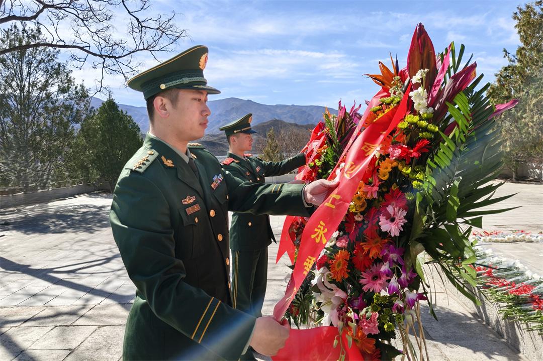 在隊史館內,官兵們聆聽單位發(fā)展歷程和英烈事跡,回望革命先輩“人在陣地在”的堅定決心,深刻感悟英烈為國家和人民犧牲奉獻的崇高精神。在烈士墓碑前,官兵們向烈士獻花致敬。