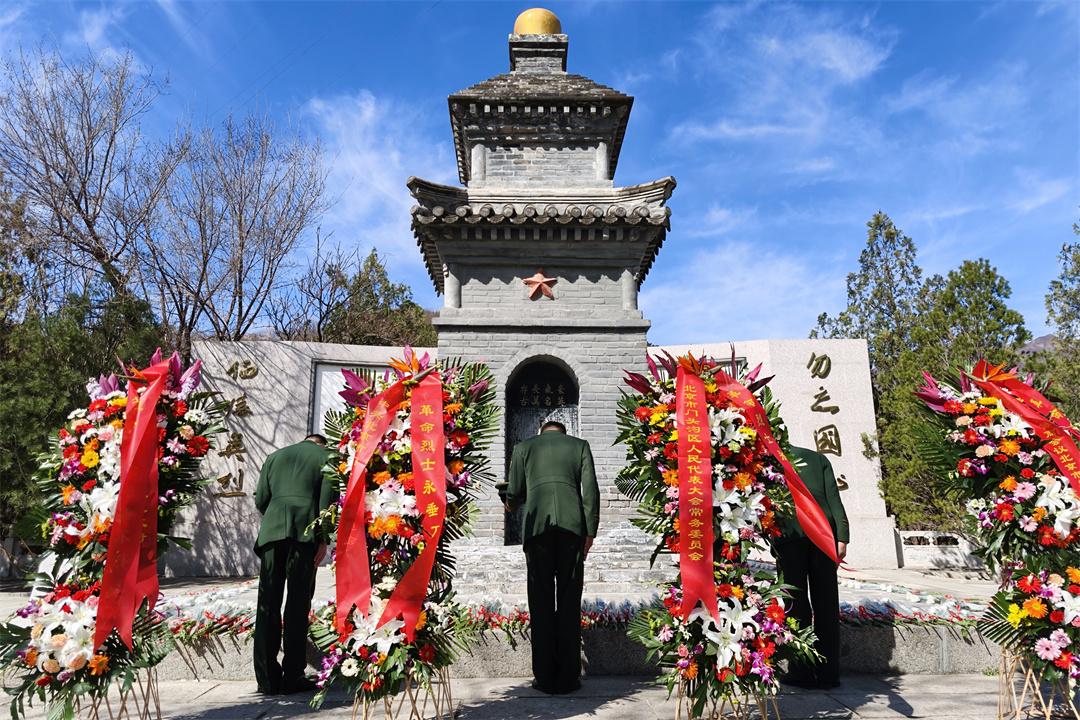 圖為向英烈敬獻花籃。陳春越 攝