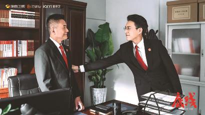 首部全景展現(xiàn)我國司法改革最新成果的法治題材電視劇《底線》正在熱播,鋪展當(dāng)代敘事視角下的法治中國圖景。圖為該劇劇照,右為主演靳東,左為特別出演張志堅(jiān)。