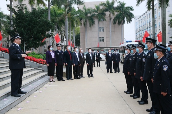 在深圳監(jiān)獄,蔣溪林一行看望慰問(wèn)了深圳監(jiān)獄領(lǐng)導(dǎo)班子成員和警察代表,并向他們致以節(jié)日的問(wèn)候。蔣溪林指出,深圳監(jiān)獄在確保疫情零輸入、零感染,始終確保監(jiān)獄安全穩(wěn)定的同時(shí),開(kāi)展排查建監(jiān)二十多年以來(lái)減刑、假釋、暫予監(jiān)外執(zhí)行專項(xiàng)案件近3萬(wàn)宗,無(wú)一起需要依法糾正的案件,高分通過(guò)廣東省規(guī)范化示范監(jiān)獄創(chuàng)建,順利收押深圳籍重刑犯、香港特區(qū)罪犯,建設(shè)評(píng)估矯正中心推進(jìn)精準(zhǔn)科學(xué)矯正,建設(shè)綜合服務(wù)大廳提升為民服務(wù)質(zhì)效,成績(jī)的取得實(shí)屬不易。蔣溪林勉勵(lì)大家繼續(xù)堅(jiān)守崗位,認(rèn)真履行好教育改造罪犯責(zé)任,抓好疫情防控工作,確保場(chǎng)所安全穩(wěn)定。