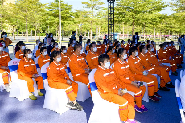 活動(dòng)現(xiàn)場(chǎng)對(duì)全市從事一線環(huán)衛(wèi)工作累計(jì)時(shí)長(zhǎng)超過(guò)5年的100名優(yōu)秀環(huán)衛(wèi)工人進(jìn)行褒揚(yáng),10名優(yōu)秀環(huán)衛(wèi)工人代表上臺(tái)領(lǐng)獎(jiǎng)。他們以實(shí)際行動(dòng)譜寫(xiě)了新時(shí)代的勞動(dòng)者之歌,為深圳創(chuàng)建全國(guó)文明城市,創(chuàng)建美好的城市環(huán)境作出了重要貢獻(xiàn)。