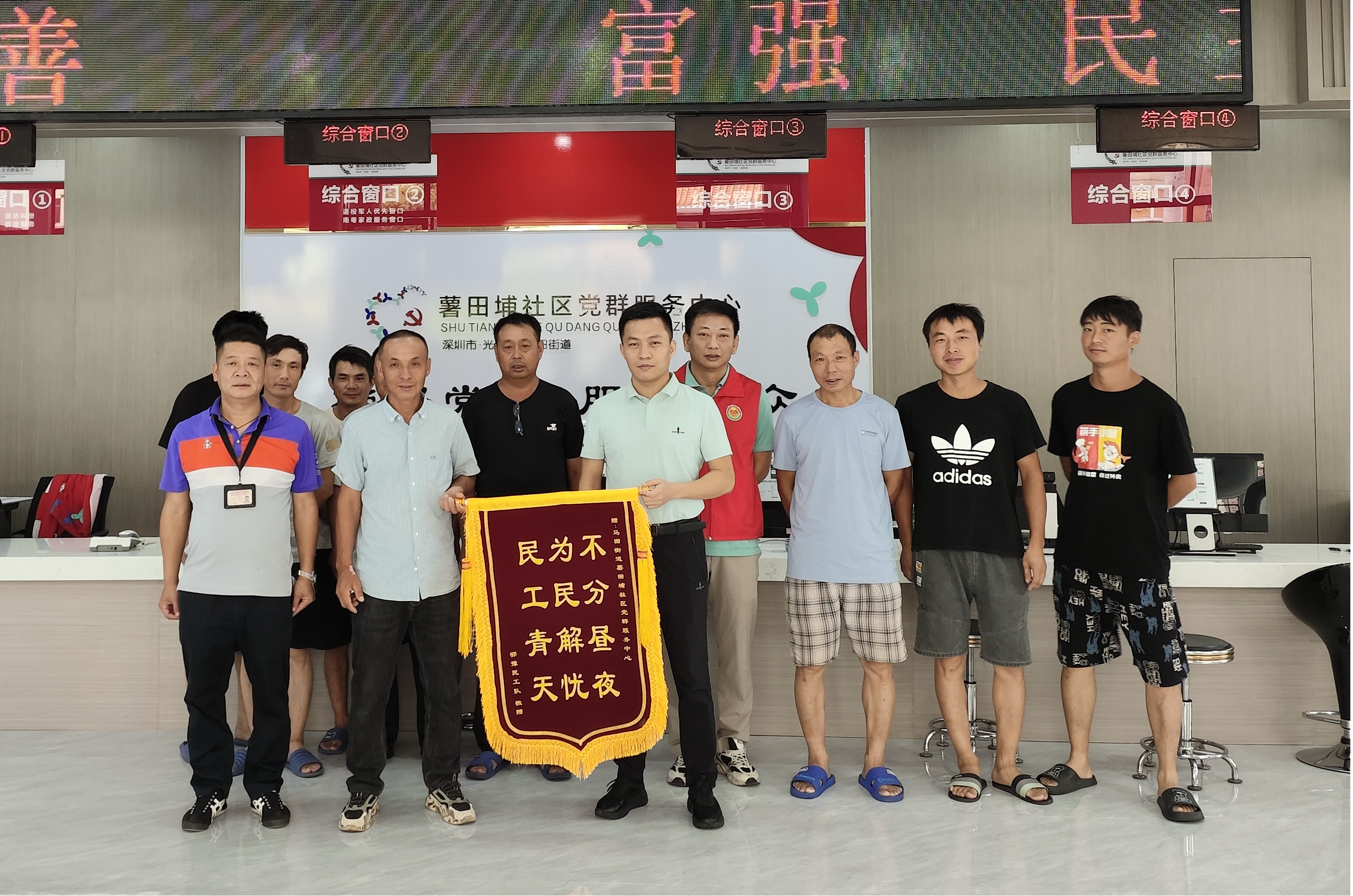 “謝謝你們幫我們拿到了工資,幫我們辦了件大實(shí)事、大好事?!苯眨瑥V東省光明區(qū)馬田街道薯田埔社區(qū)數(shù)名勞動者為感謝社區(qū)“紅色小分格”協(xié)助其化解勞資糾紛,將錦旗送至工作人員手中。