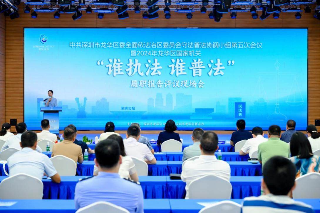 評(píng)議會(huì)上,區(qū)科技創(chuàng)新局、區(qū)城管和綜合執(zhí)法局、觀瀾街道、市規(guī)劃和自然資源局龍華管理局、龍華區(qū)稅務(wù)局共5家單位依次進(jìn)行“誰(shuí)執(zhí)法誰(shuí)普法”履職匯報(bào),全面展示創(chuàng)新成果和經(jīng)驗(yàn)做法。