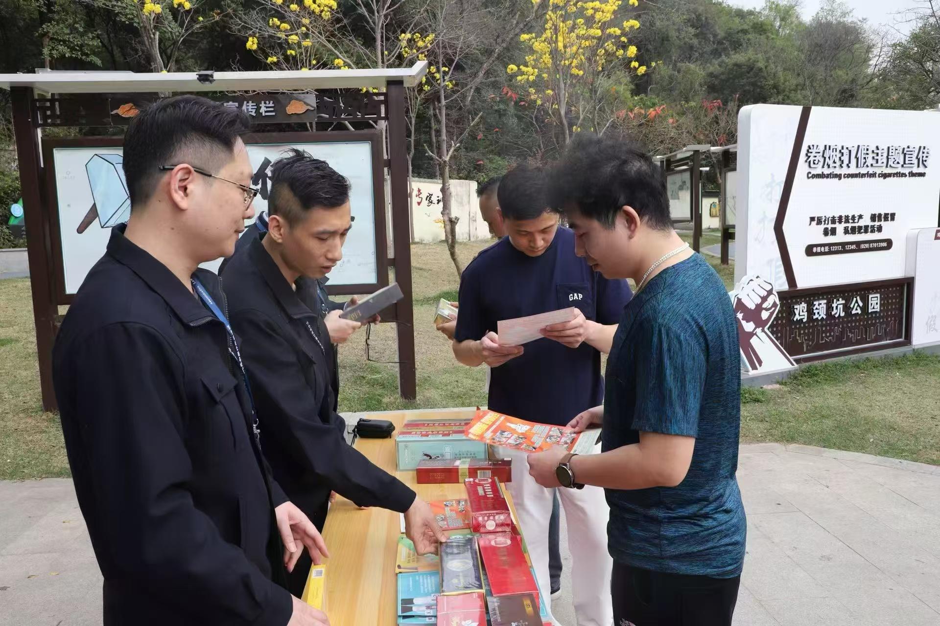 活動現(xiàn)場,天河區(qū)煙草專賣局的工作人員紛紛化身“消費(fèi)安全衛(wèi)士”,熱情且耐心地為過往群眾講解卷煙真?zhèn)舞b別技巧。工作人員手持真、假煙樣品,細(xì)致對比,從包裝印刷的清晰度、煙絲色澤的差異、口感香氣的不同等多個維度,用通俗易懂的語言傳授辨別方法,幫助群眾練就一雙識別真假煙的“火眼金睛”。